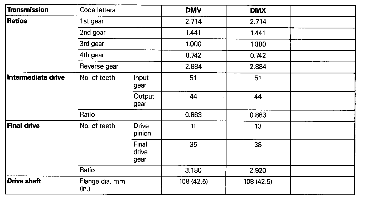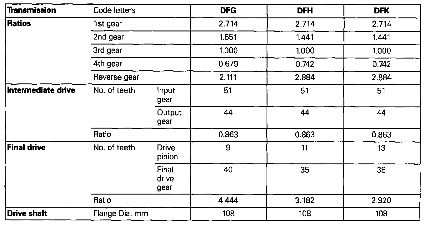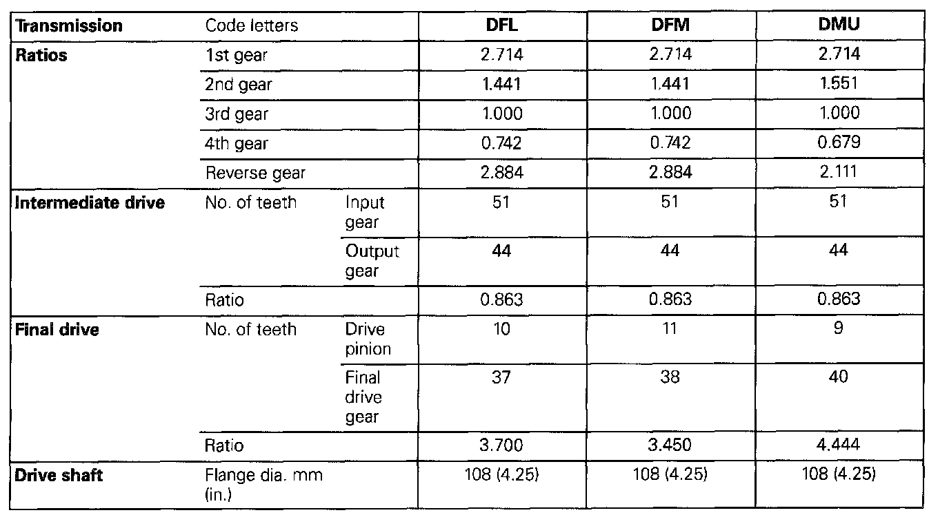 Code letters, transmission application, ratios, equipment