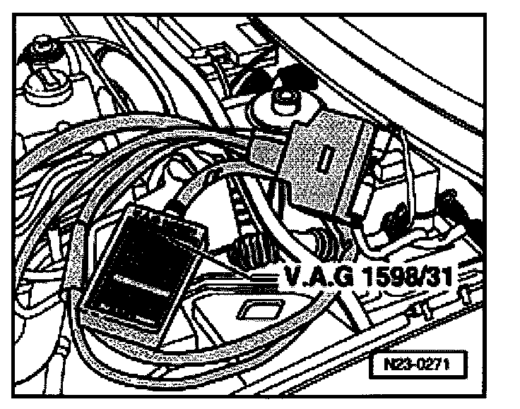 - Connect VAG 1598/31 adapter cable to control module wiring harness. Engine Control Module (ECM) is not connected.