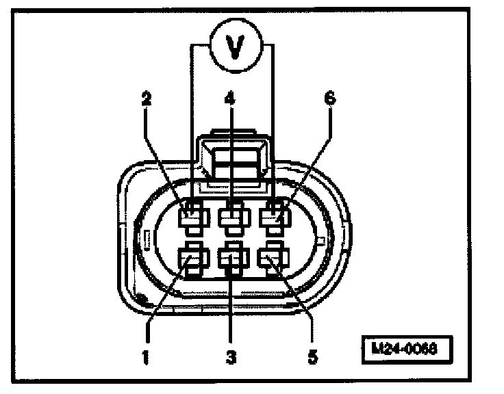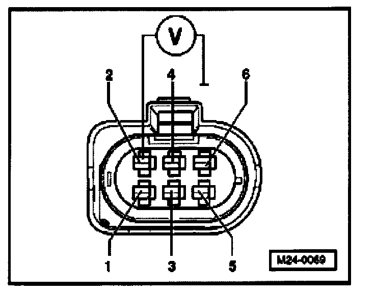 - Connect multimeter to terminals 2 + 6 of connector to make voltage measurement.