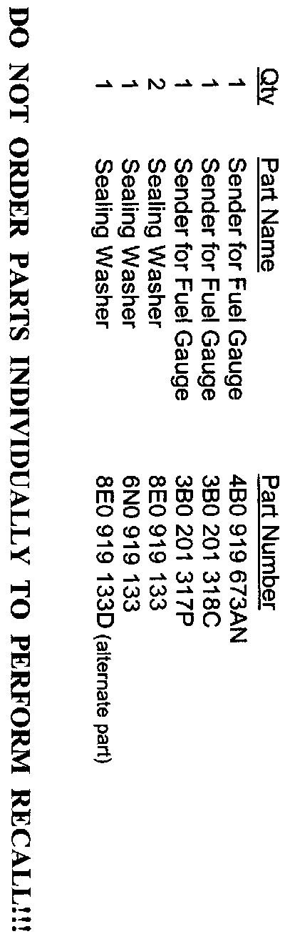1 kit Part Number - 3B0 998 673 C