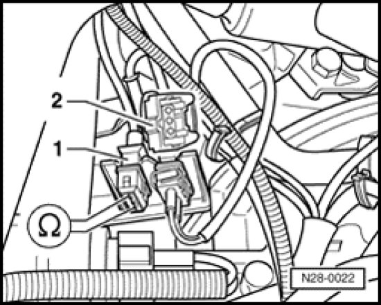 - Disconnect 2-pin connector for Knock Sensor (KS) 1 -G61- (-1-).