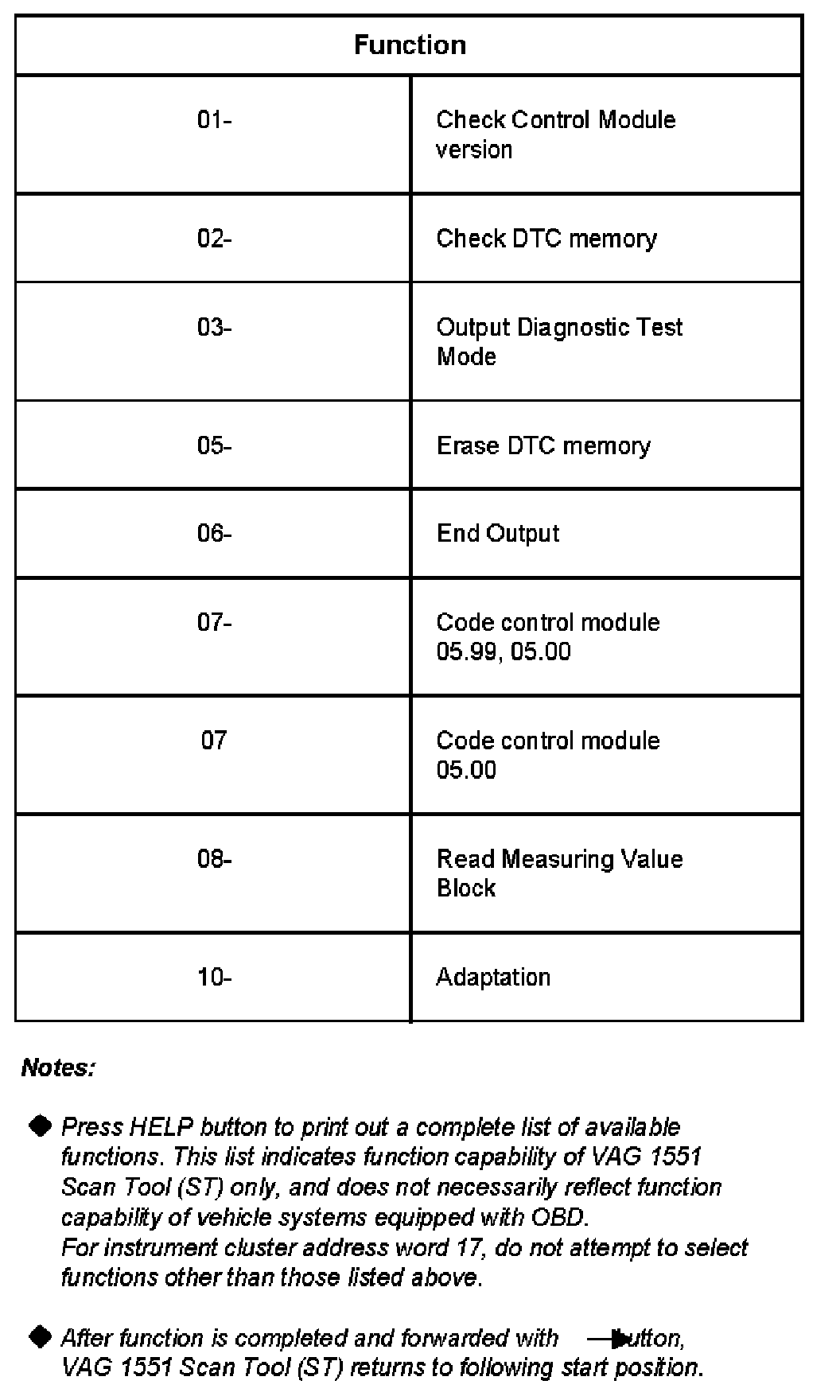- Scan Tool VAG 1551 or VAG 1552 connected.
