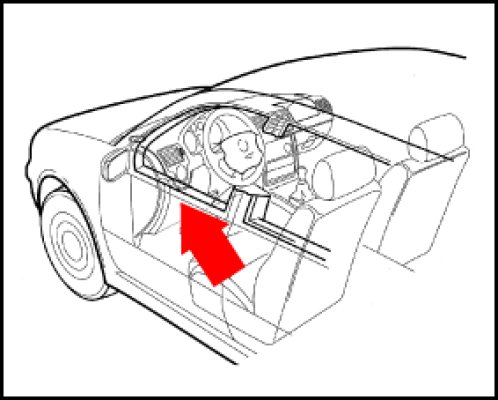 above driver's footwell, to left of the pedal cluster