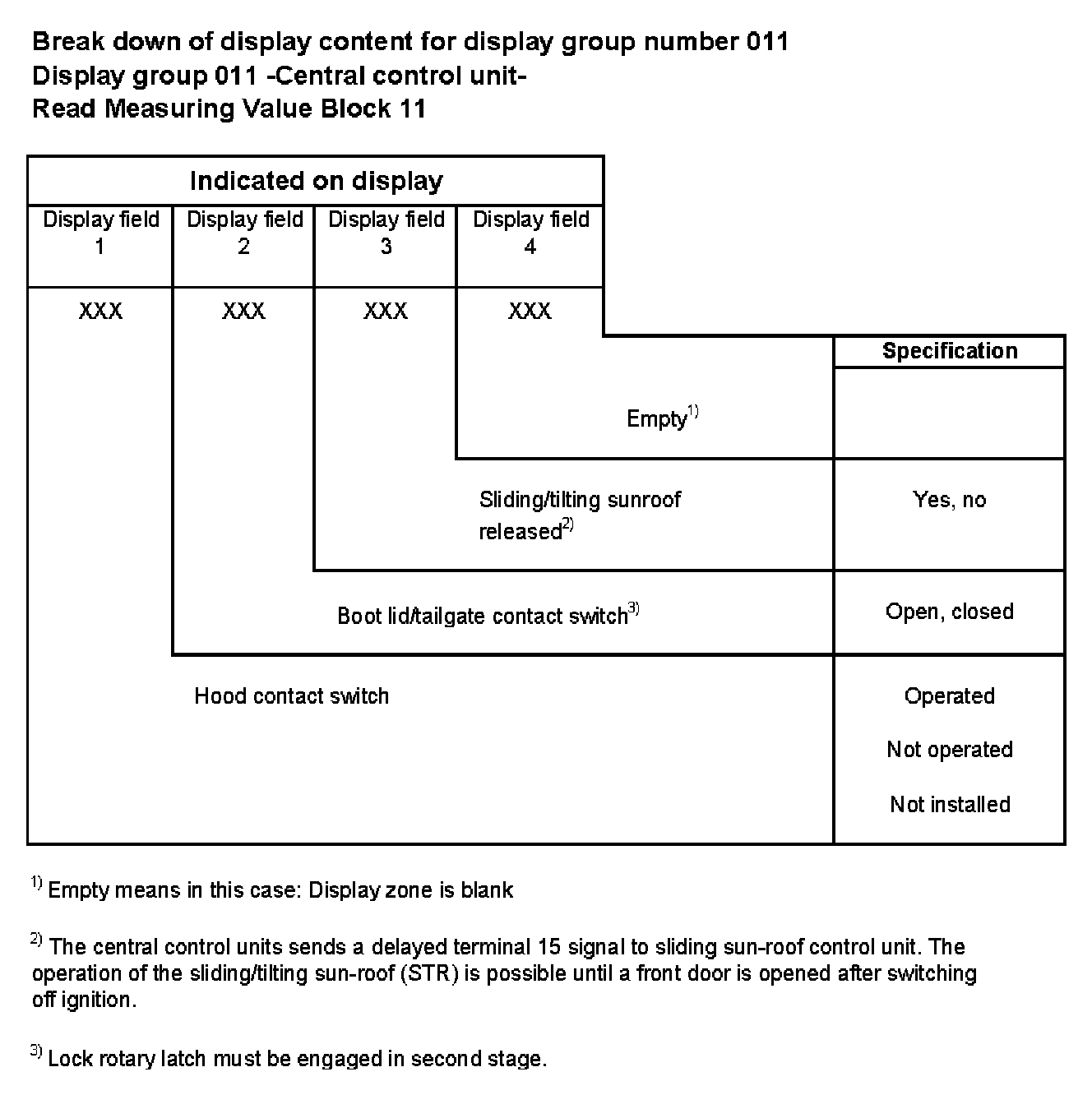 Break down of display content for display group number 011
