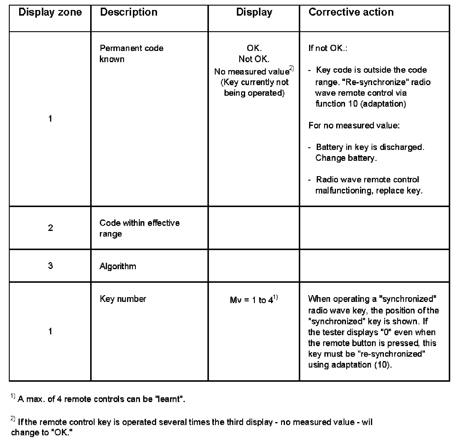 Display Zone 1 - 4: