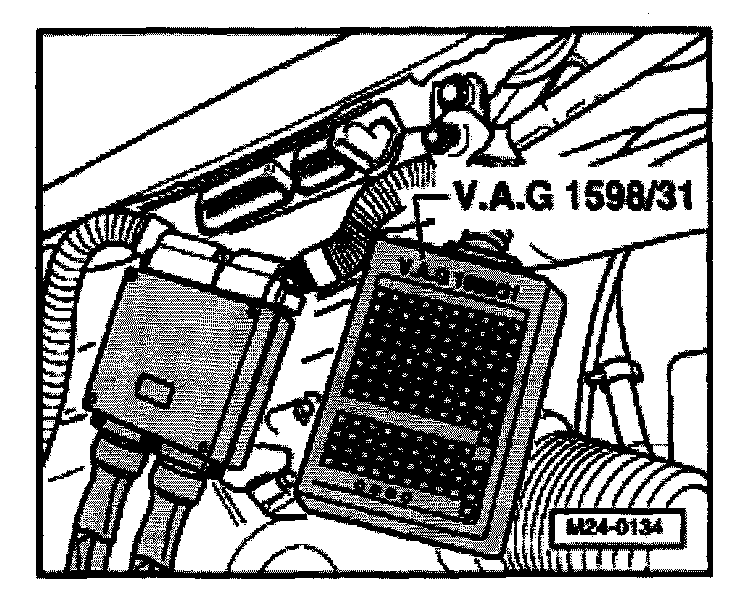 - Connect test box VAG 1598/31 to control module wiring harness. The engine control module remains disconnected.