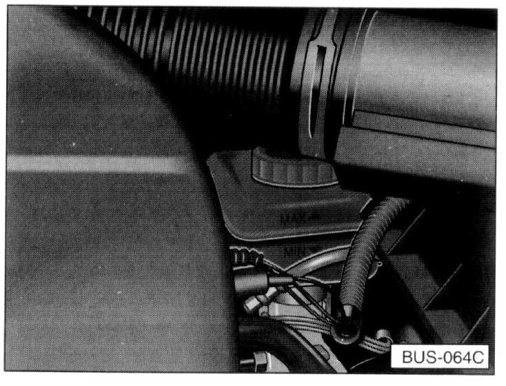 The correct fluid level is important for the proper functioning of the brake system. The fluid level in the brake fluid reservoir should always be between the "MAX" and "MIN" markings.