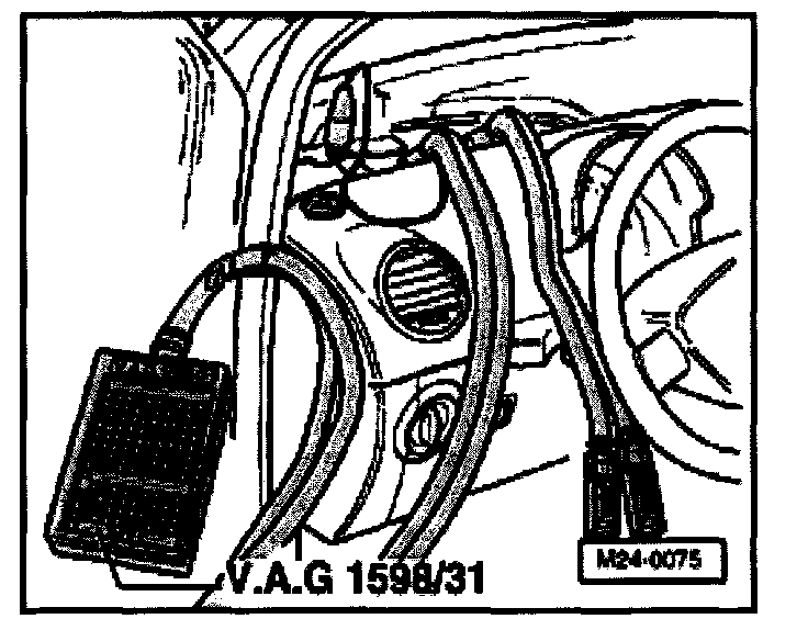 - Connect VAG 1598/31 test box to control module wiring harness. Motronic Engine Control Module (ECM) -J220- is not connected by this action.