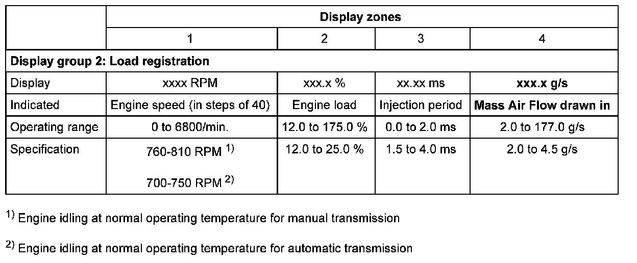 - Engine Coolant Temperature (ECT) must be at least 80 °C, see display group 04, display zone 3