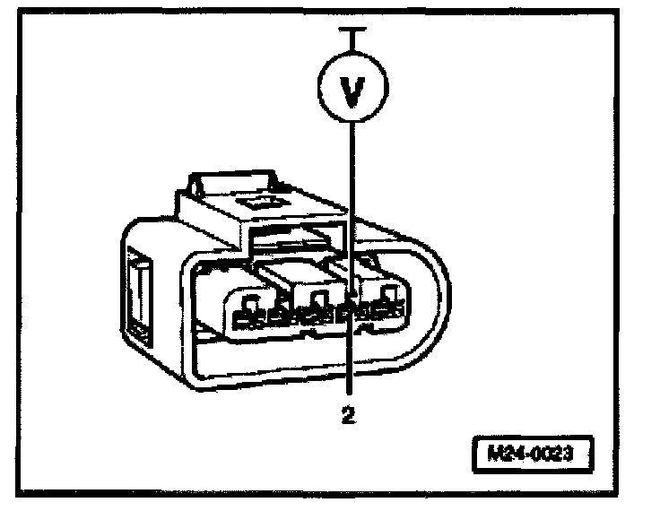 - Connect multimeter to measure voltage on connector terminal 2 and engine Ground (GND).