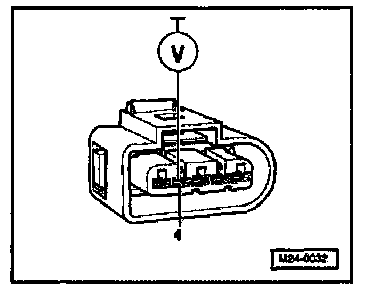 - Connect multimeter to measure voltage on connector terminal 4 and engine Ground (GND).