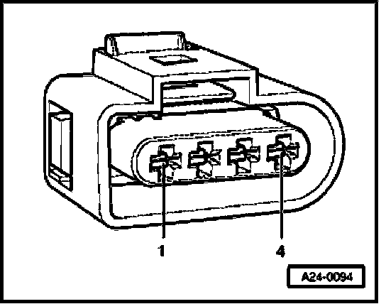- Use adapter cables from (VAG1594) to connect multimeter to terminals 1 + 3 of connector for voltage measurement.