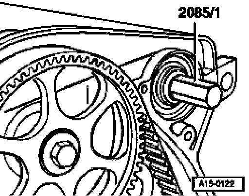 - Screw bolt 2085/1 into camshaft onto stop by hand, to guide seal extractor.