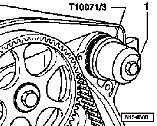 - Install guide sleeve T10071/5 onto camshaft journal.