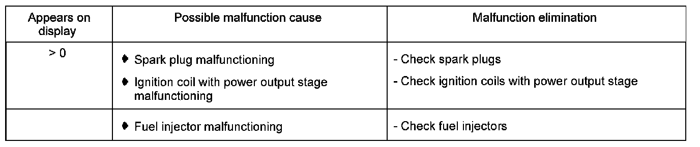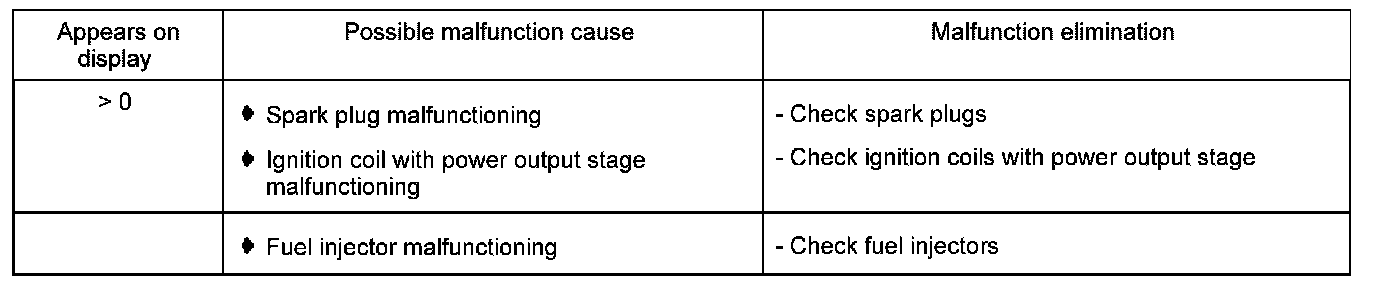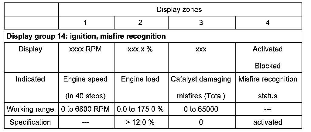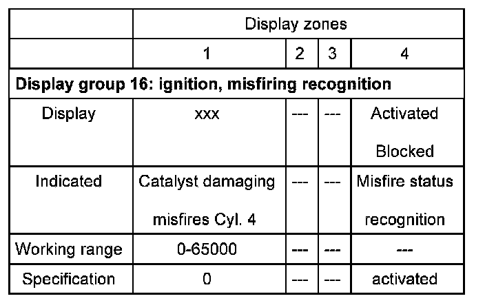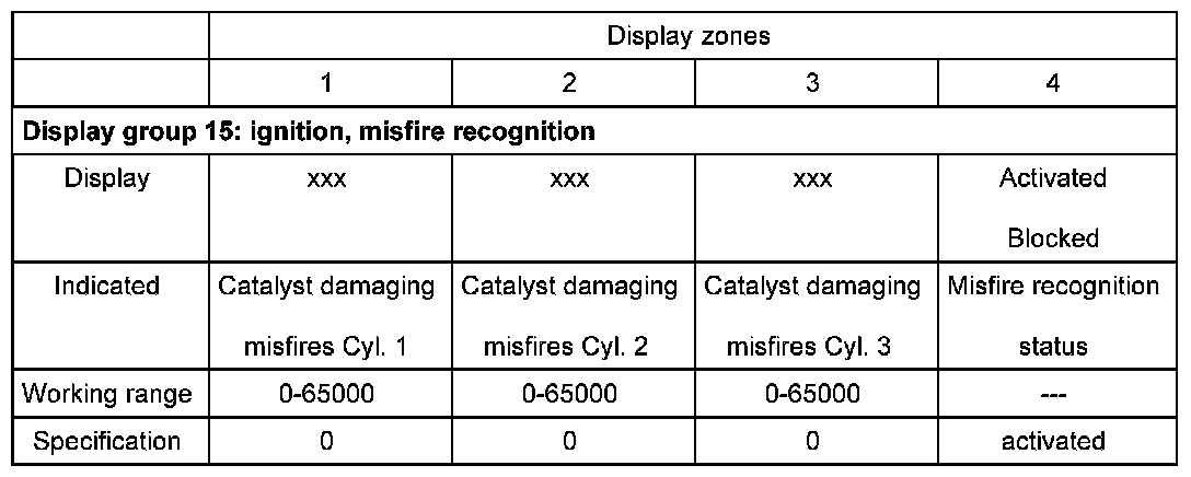 Evaluating display group 15 display zones 1 to 3 and display group 16 display zone 1 - total number of catalyst damaging misfires Cyl. 1 to Cyl. 4
