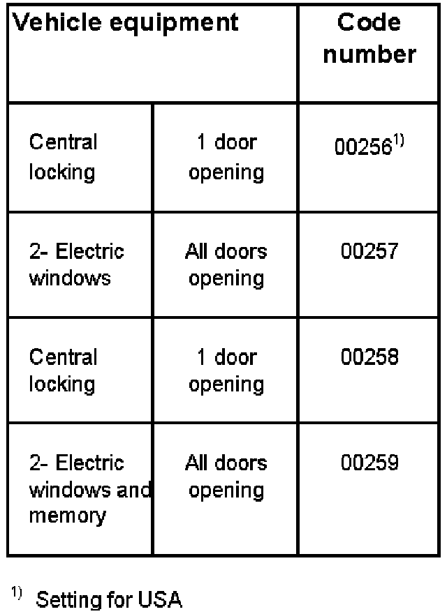 The following code numbers (and others) will be accepted by the control module; however they are for other vehicles, other countries and/or other equipment levels.