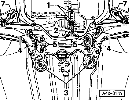 - Remove bolts -3- and -4- for subframe.