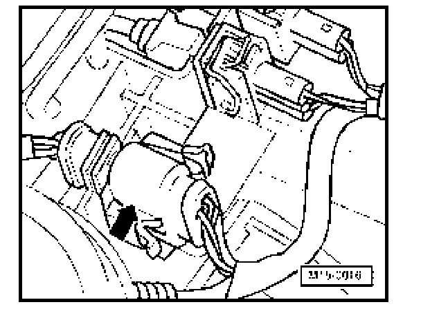 - Disconnect 10-pin harness connector for quantity adjuster (harness connector to injection pump quantity adjuster) -arrow-.