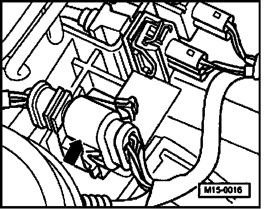 - Disconnect 10-pin harness connector (arrow) for fuel temperature sensor (harness connector to injection pump quantity adjuster).