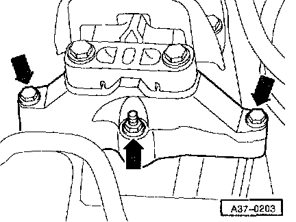 Do not remove bolts for transmission carrier (arrows) until transmission has been supported.