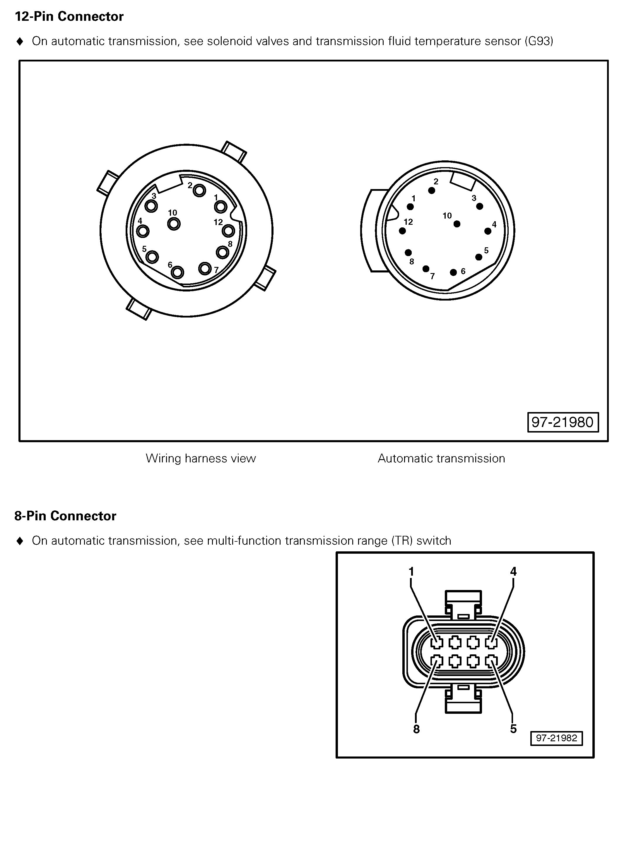 4/2 - 10 Pin Connector, In Engine Compartment, In Wiring Duct, Left; 3 Pin Connector, On A/T: