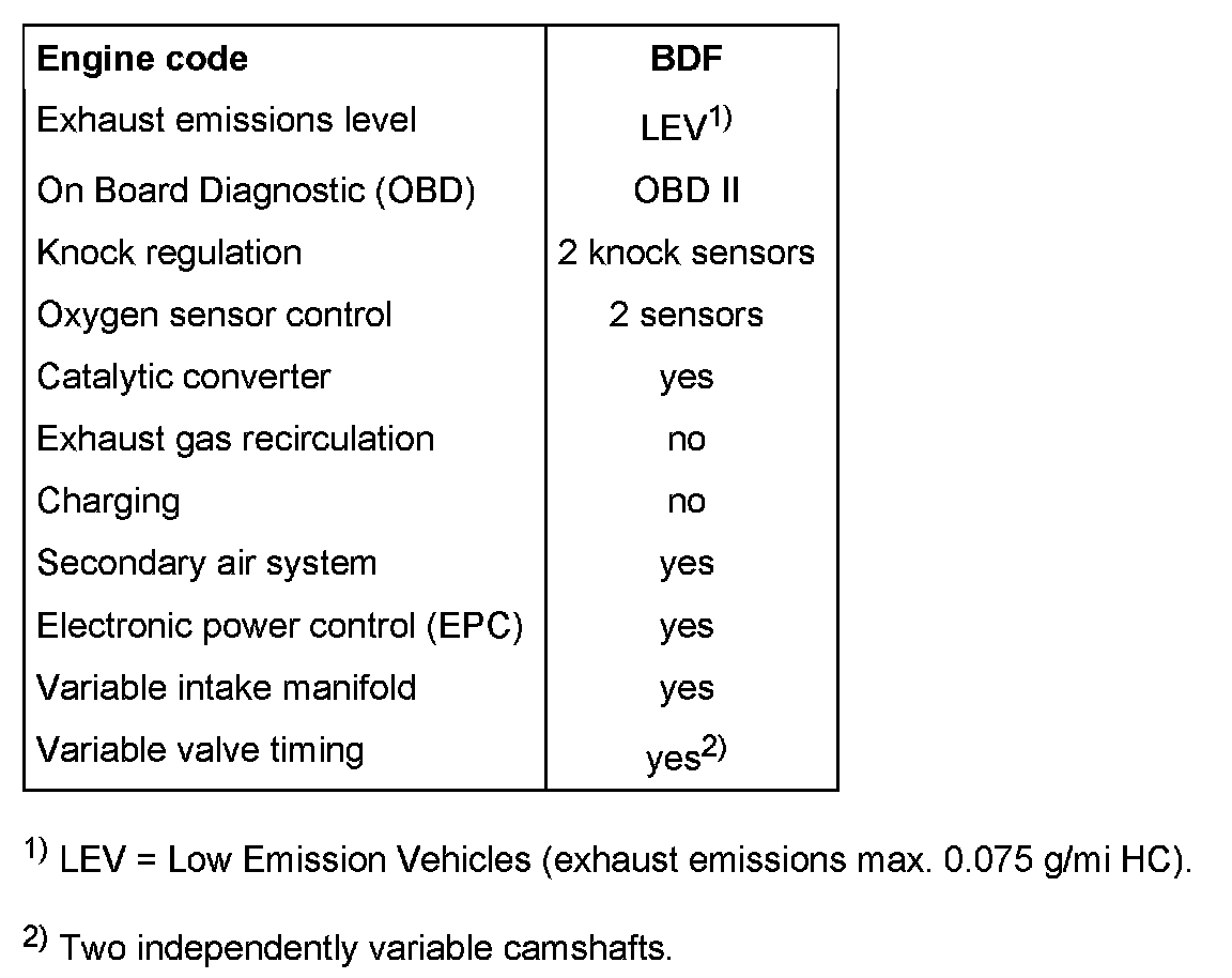 1) LEV = Low Emission Vehicles (exhaust emissions max. 0 075 g/mi HC).