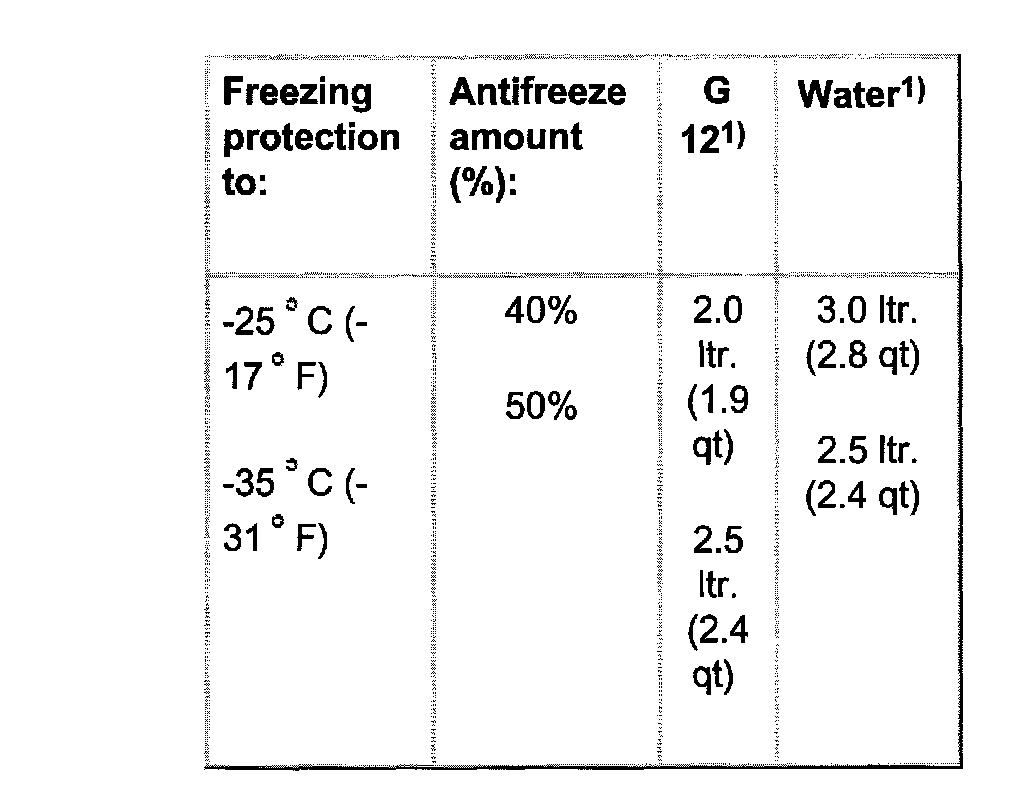 1) Coolant quantity can vary depending upon vehicle equipment.