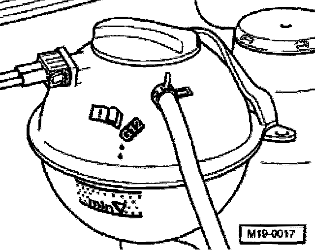 - When engine is at operating temperature, engine coolant level should be in cross-hatched section of expansion tank. If engine is cool, engine coolant level should be above min. mark.