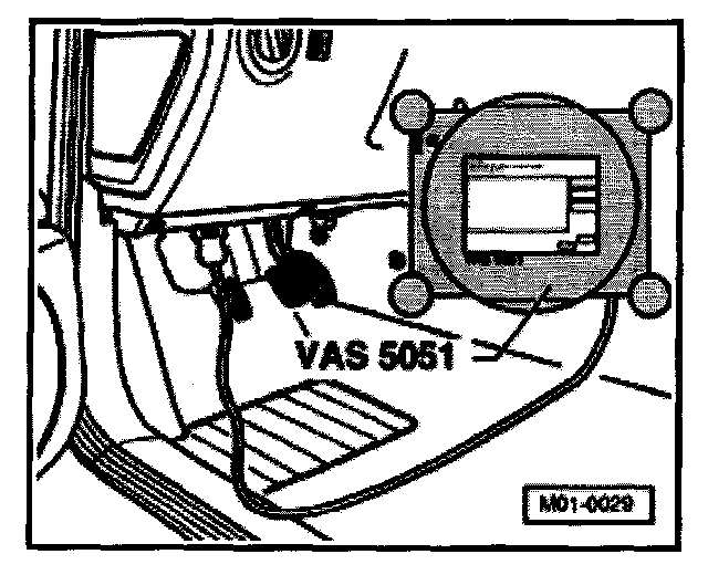 : The DLC (arrow) is located behind a cover under the left side of the instrument panel.