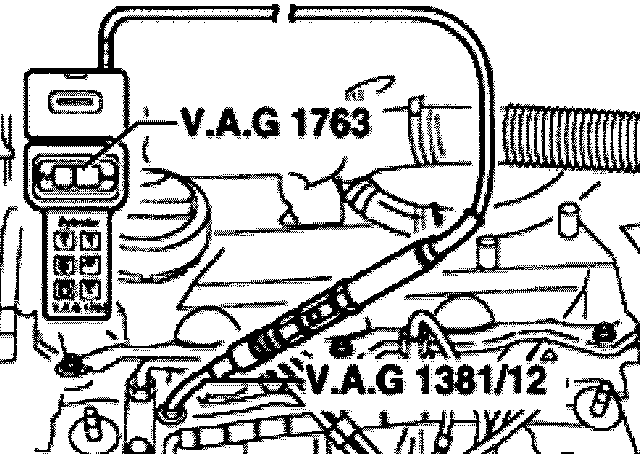 - Thread in VAG 1381/12 adaptor in place of glow plugs.