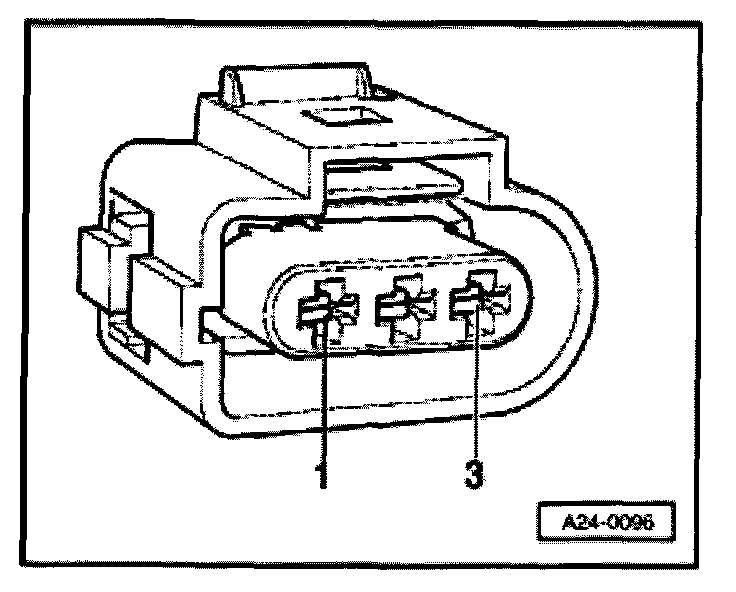 - Using adapter cables from VW1594, connect VAG1527B voltage tester to detached harness connector terminals -2- and -3-.