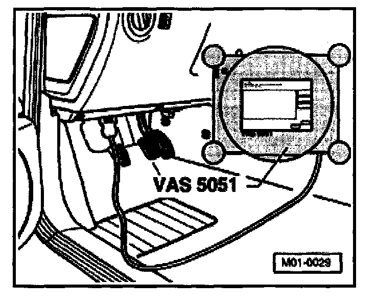 - Connect tester VAS 5051 using diagnostic cable VAS 5051/1 or VAS 5051/3B as follows: