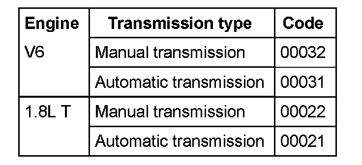 Coding table for ASR control modules without CAN-bus