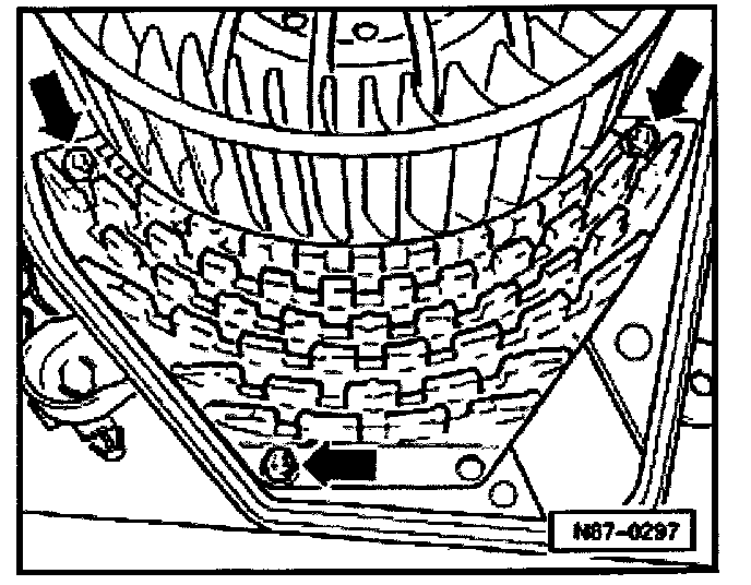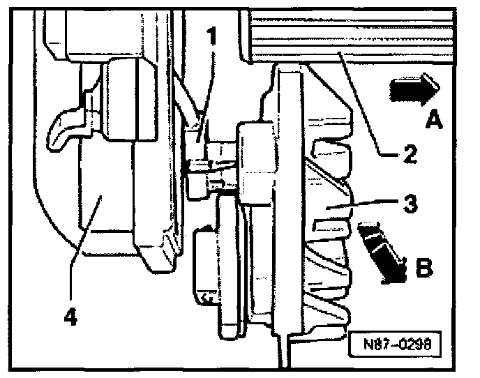 - Pull both components carefully apart in direction of -arrow A- to provide a slight clearance between fresh air blower wheel - 2- and housing -4-.
