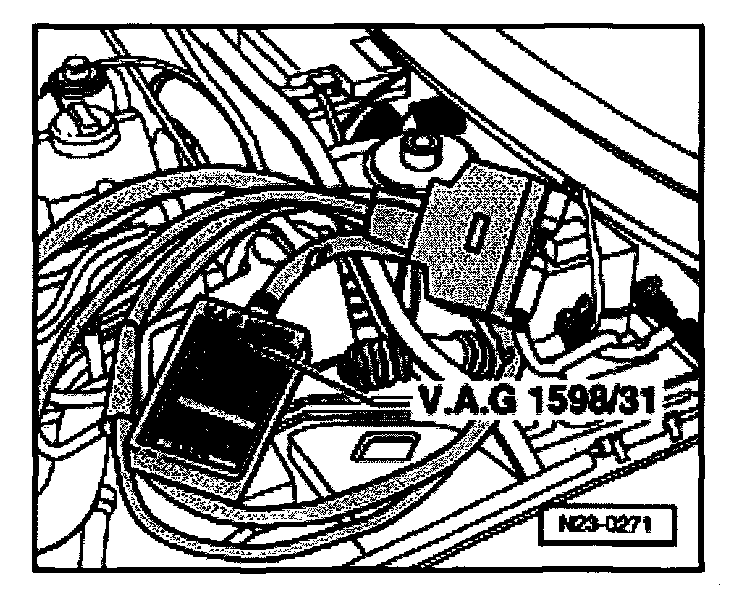- Connect VAG 1598/31 test box to control module wiring harness. Engine Control Module (ECM) is not connected.