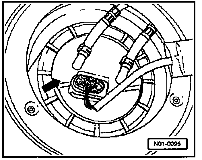 Fig. 2 Sender for fuel gauge -G-, location (all-wheel drive models)