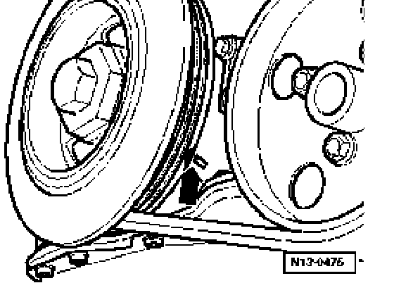 - Turn crankshaft over on vibration damper securing bolt in engine direction of rotation -arrow-.