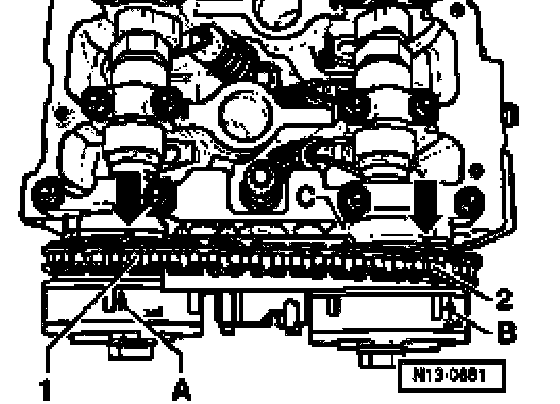 Note: If the camshaft bar cannot be fitted, turn the crankshaft in engine direction of rotation until approximately 5 mm past the TDC setting for No. 1 cyl. (dependent on drive chain tolerances).