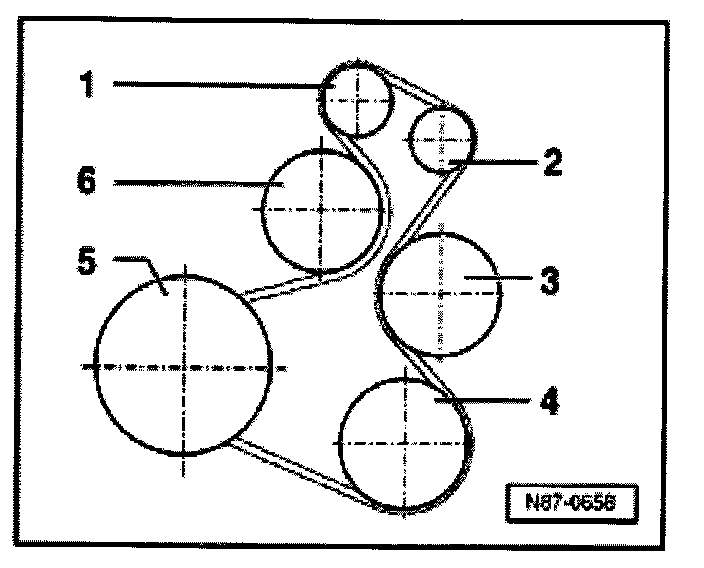 NOTE: Before removing ribbed belt, mark direction of rotation. When installing the belt ensure it is correctly seated in the pulley.
