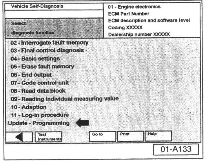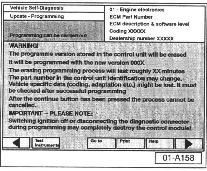 The "Update - Programming" function is only available when the inserted flashing CD level and current vehicle ECM level are different.
