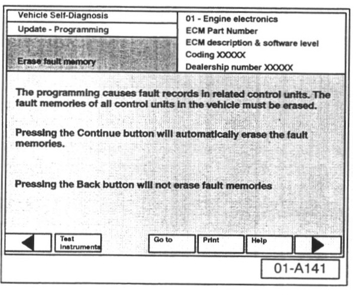 Failure to erase ALL fault memories may cause "Update - Programming" (flashing) procedure to fail!