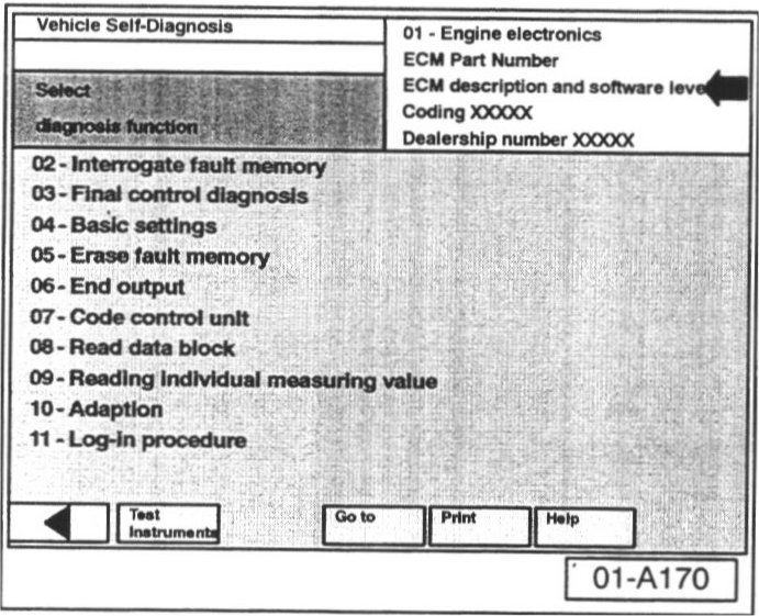 - Select vehicle system "01-Engine electronics".