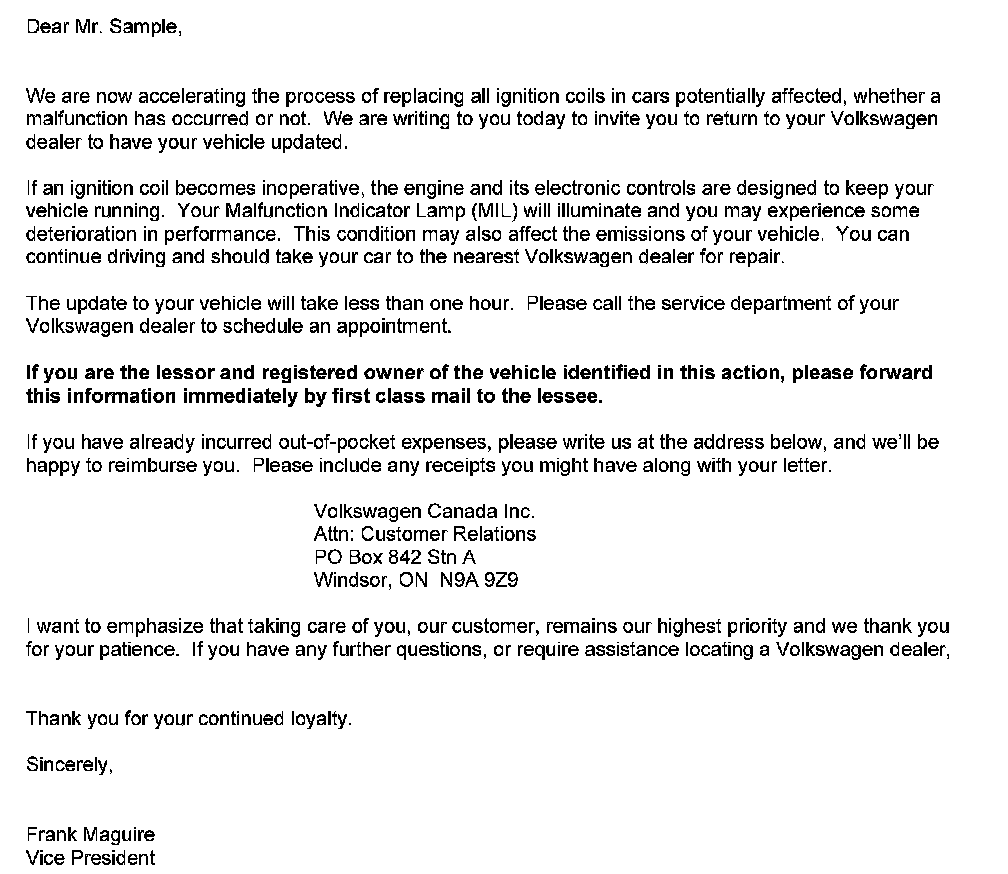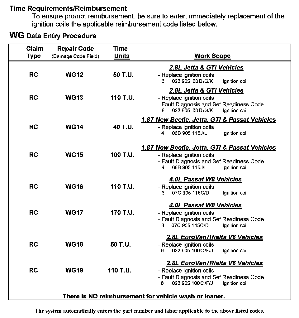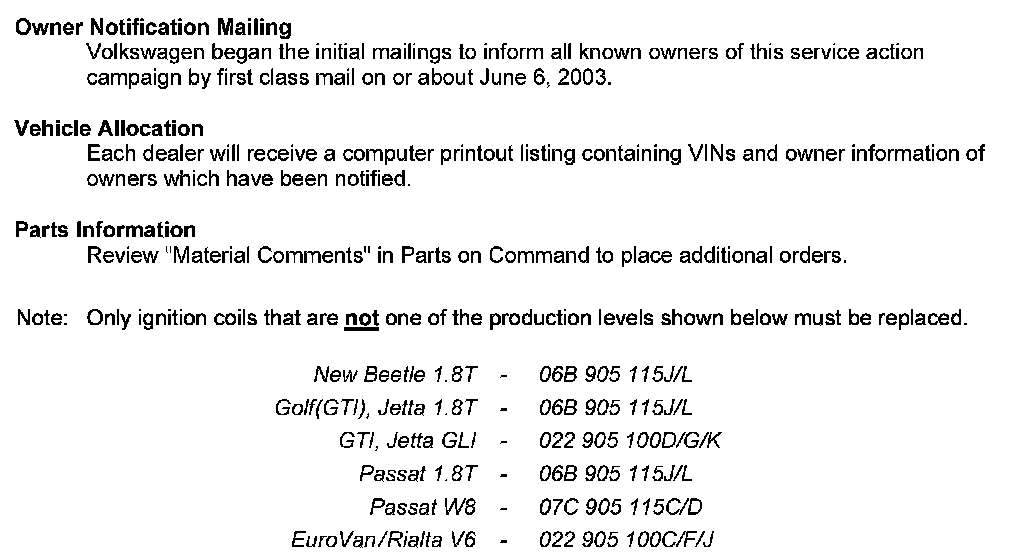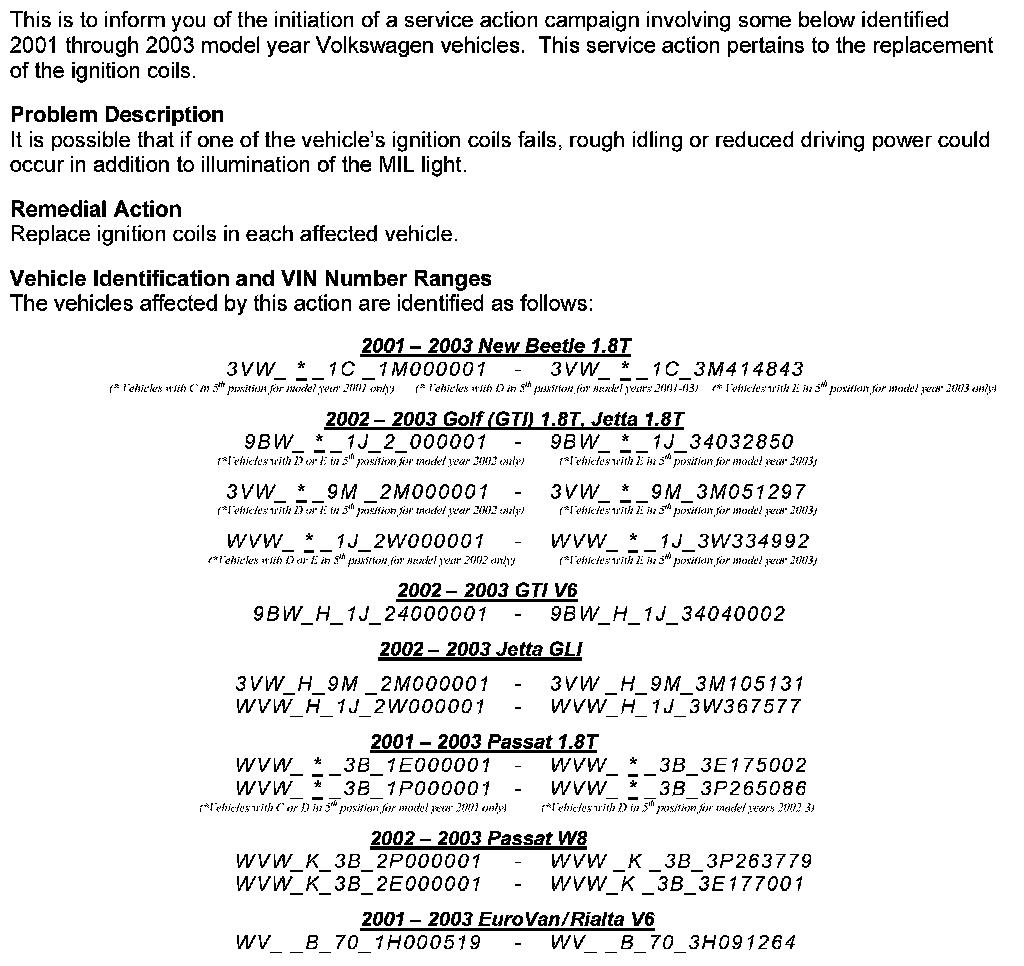 Subject: 2001 2003 Model Year Volkswagen Vehicles Replace Ignition Coils