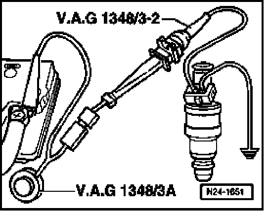 - Use adapter cable to connect second terminal of fuel injector to VAG1348/3 remote control with VAG1348/3-2 adapter cable.