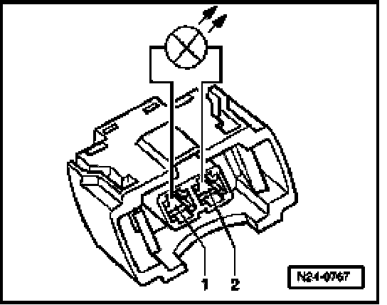 - Connect diode test lamp to connector of fuel injector to be tested terminal 1 and Ground (GND).