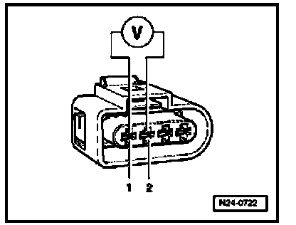- Connect multimeter to measure voltage at terminals 1 and 2 (connector to Motronic Engine Control Module (ECM) -J220-) using adapter cables from VAG 1594.