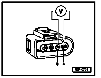- Connect multimeter to measure voltage at terminals 3 and 4 (connector to Motronic control module) using adapter cables from VAG 1594.