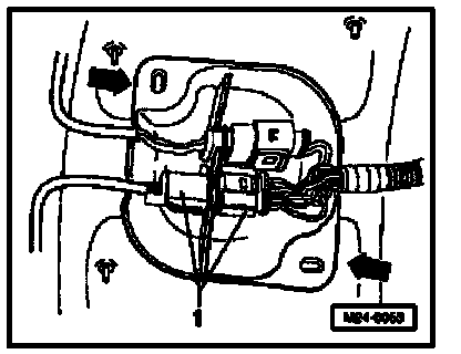 - Remove protective cover -arrows-and disconnect 6-pin connector (black) -1- to Heated Oxygen Sensor (HO2S) -G39-.