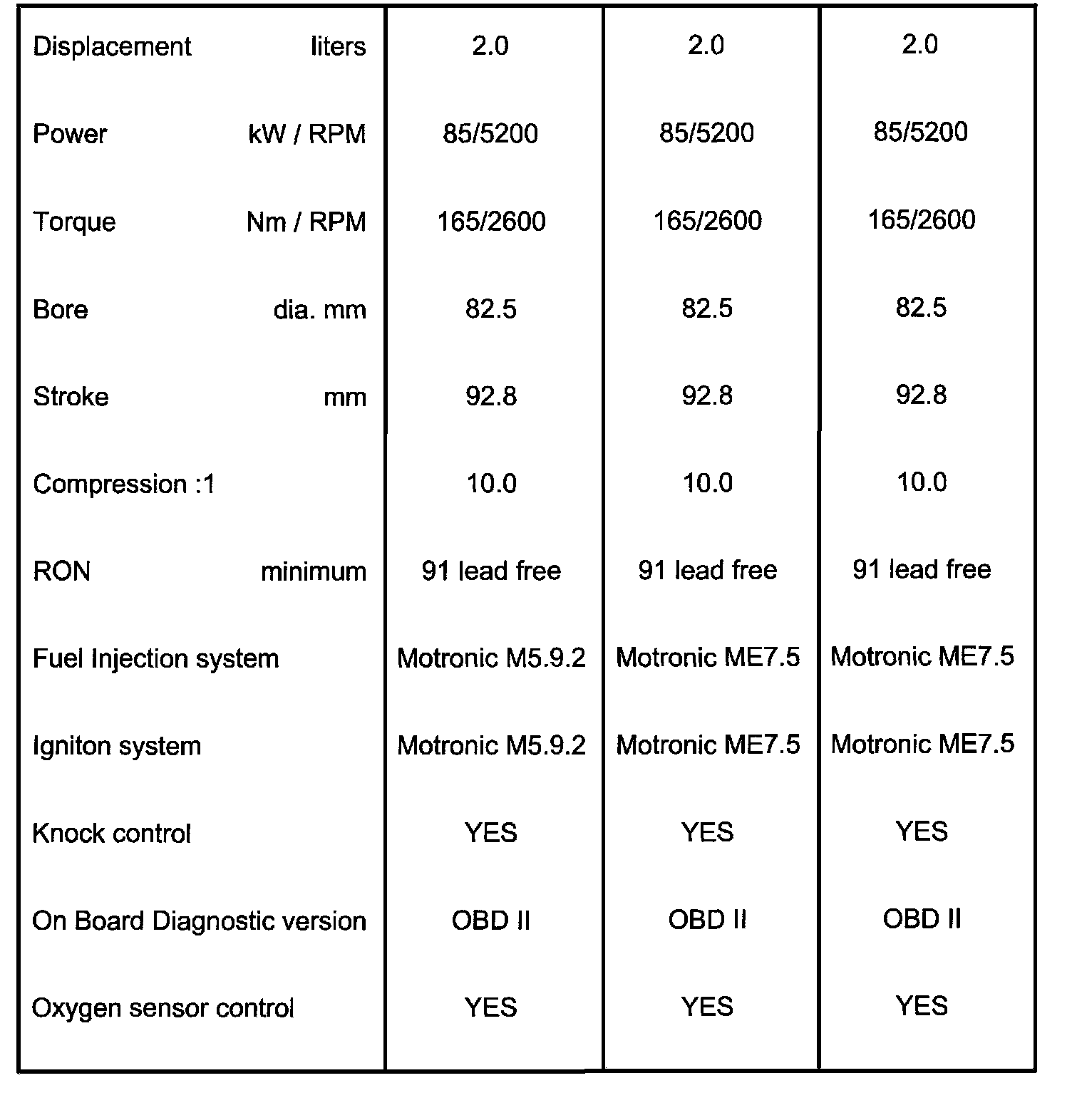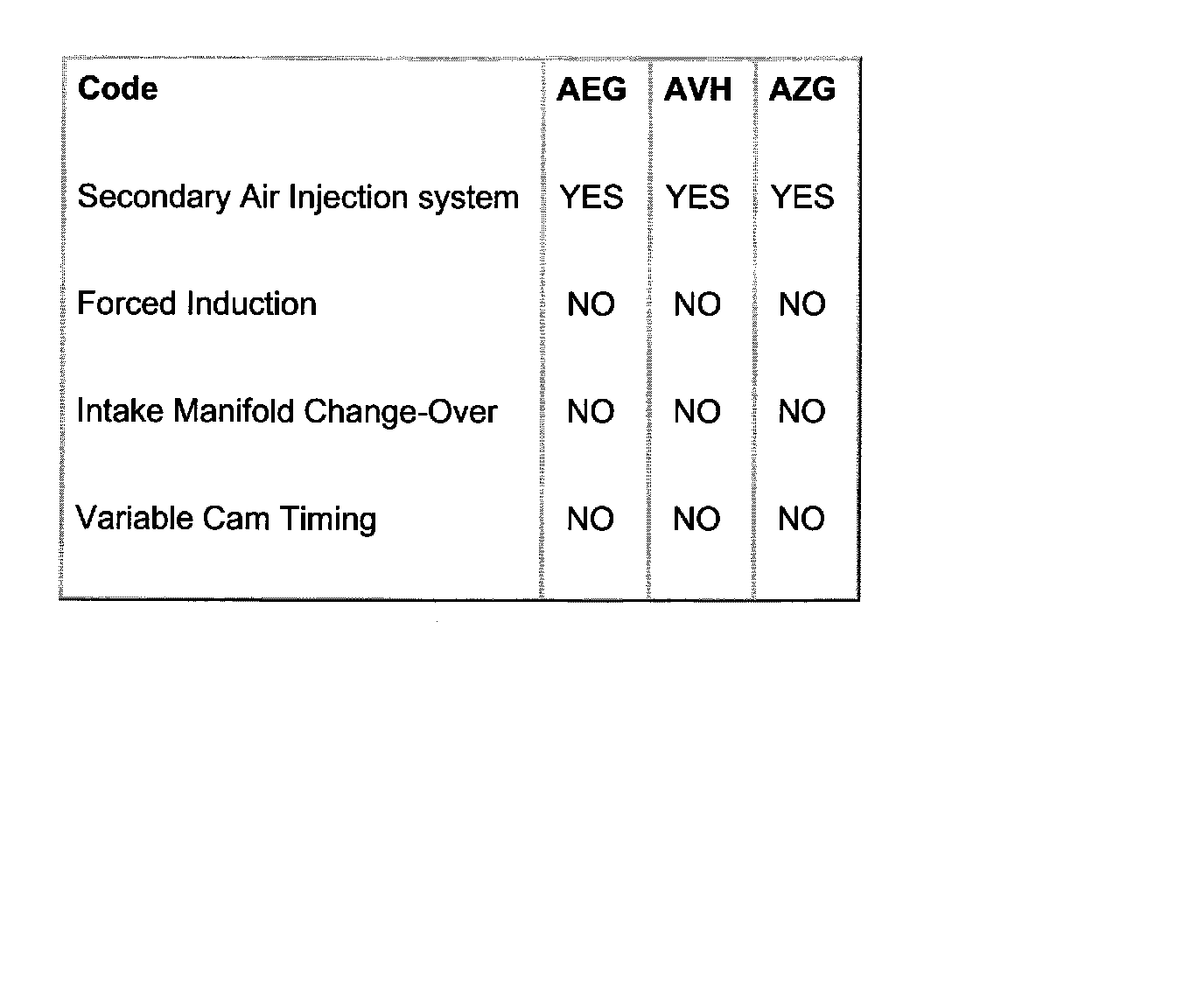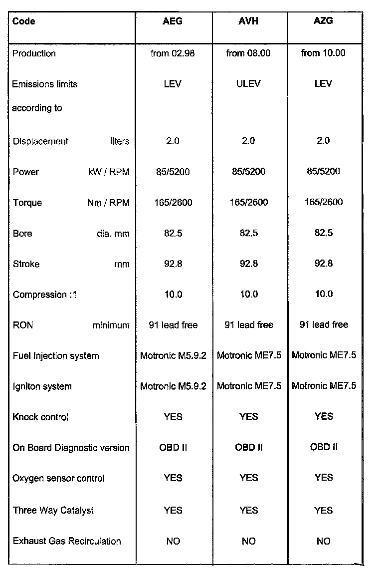 Engine Code letters AVH, AZG