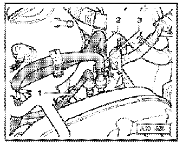 - Remove the fuel supply line - 3 - and catch leaking fuel using a rag.